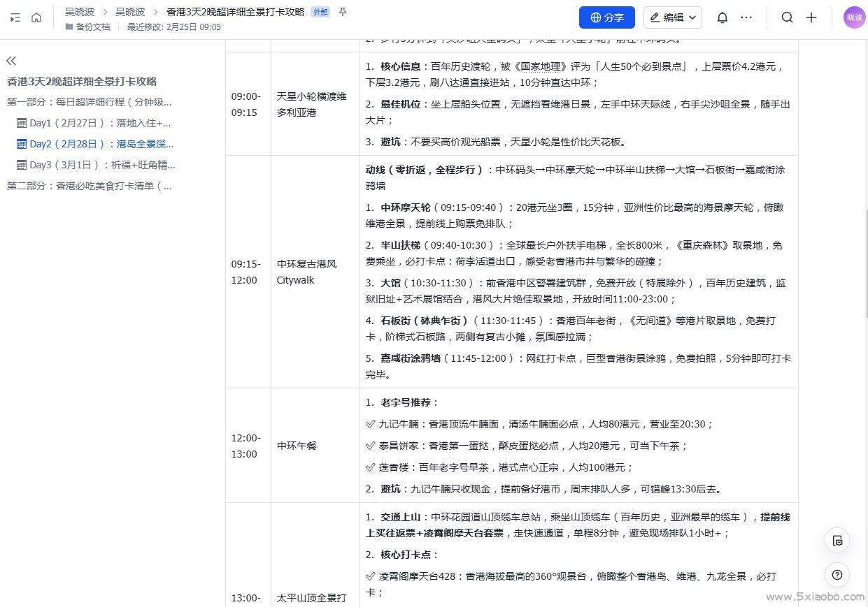 为了顺便旅游一下,我还是做了一下功课的,用了豆包AI,告诉它我几点到,几点返程,帮我详细规划一下游玩的攻略,它非常详细得帮我完成了。然后把攻略放到飞书文档中进行整理排版,对照抖音的评价和推荐进行筛选,确定好最终的线路,后来发现,我这种走马观花的旅游走景点实在是快,额外还去了好几个地方。